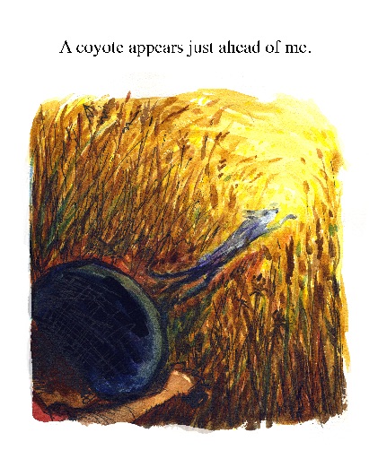 I felt I had to give Goodbye Coyote it’s own page on my website. Not only is Goodbye Coyote a very personal story, it’s also a story in which I allowed myself to fly off in an entirely new artistic direction. Below are some sample pages. While I search for a real home at a traditional publisher for this story, I’ve made it available as a print on demand book at Createspace, Amazon, and Barnes and Noble. Profits from this print-on-demand edition go to The Catherine Violet Hubbard Wildlife Sanctuary.